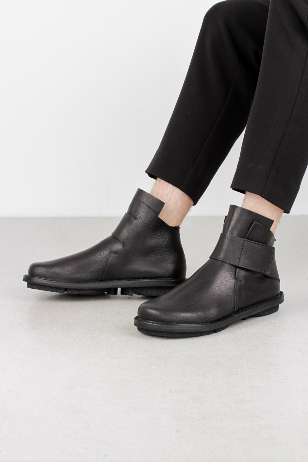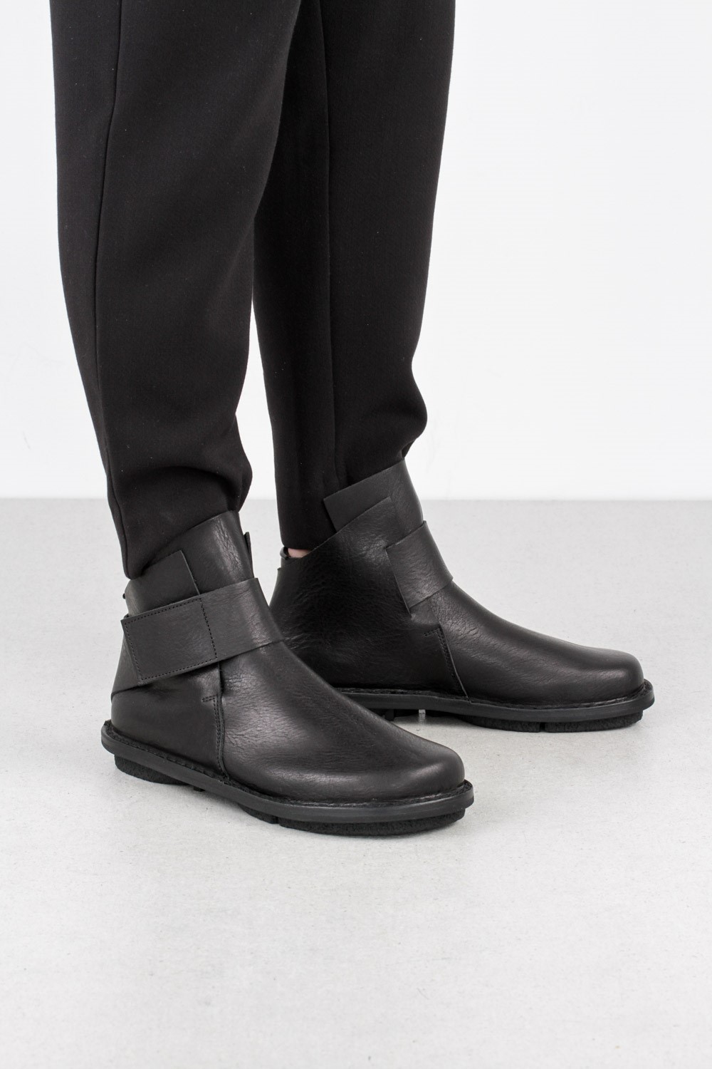 Trippen Men’s Shoes Base M | Vigor Black In Stock: 39 40 41 42 43 44 45 46 Ready In 10 Days: 47 Add To Cart Unisex Ankle Boot With A Wide Strap And A Velcro Fastening. This Model Runs A Bit Bigger Than Normal. If You Are Between Two Sizes