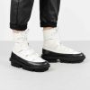Lace-up boot featuring hooks and eyes in the style of classic mountain boots.