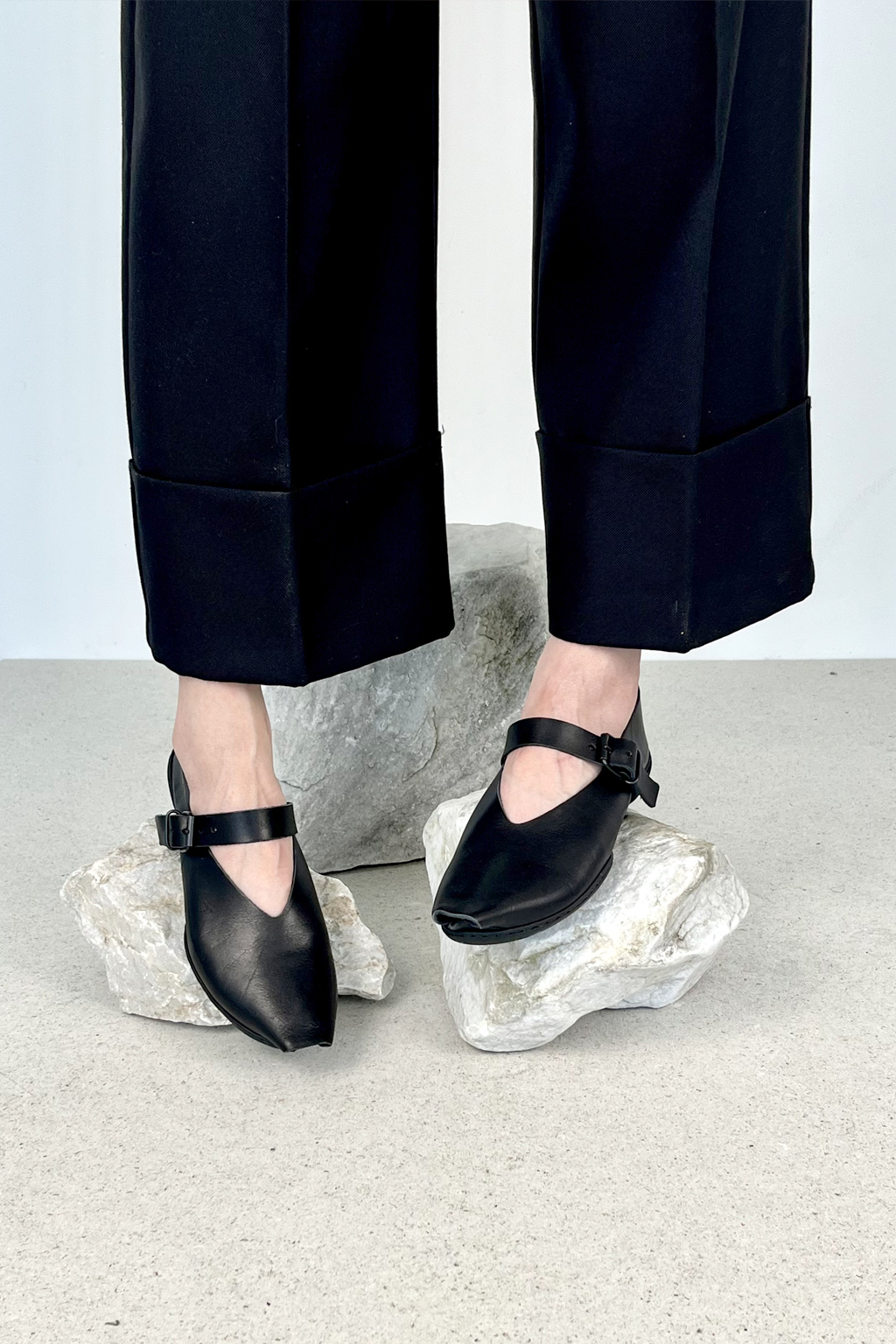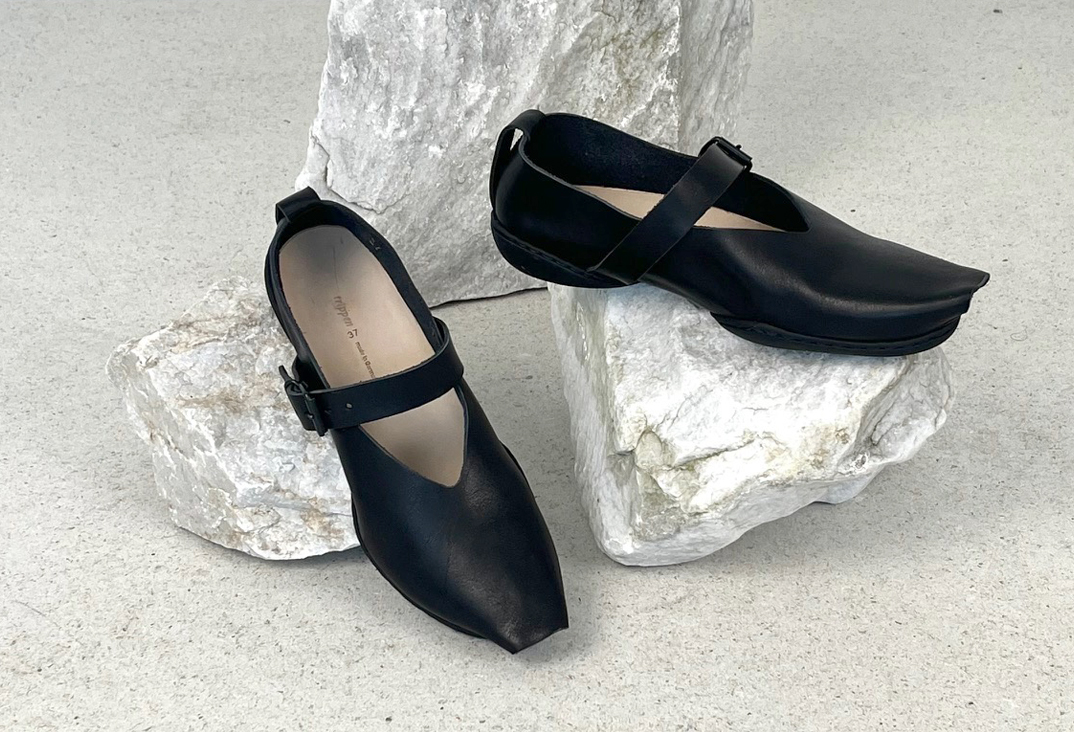 Low cut ballerina with a new, slightly open, forwards-extended toe.