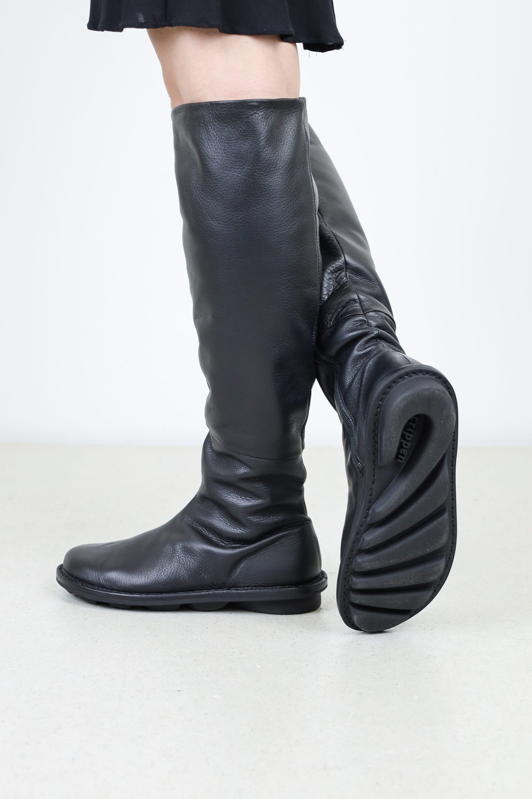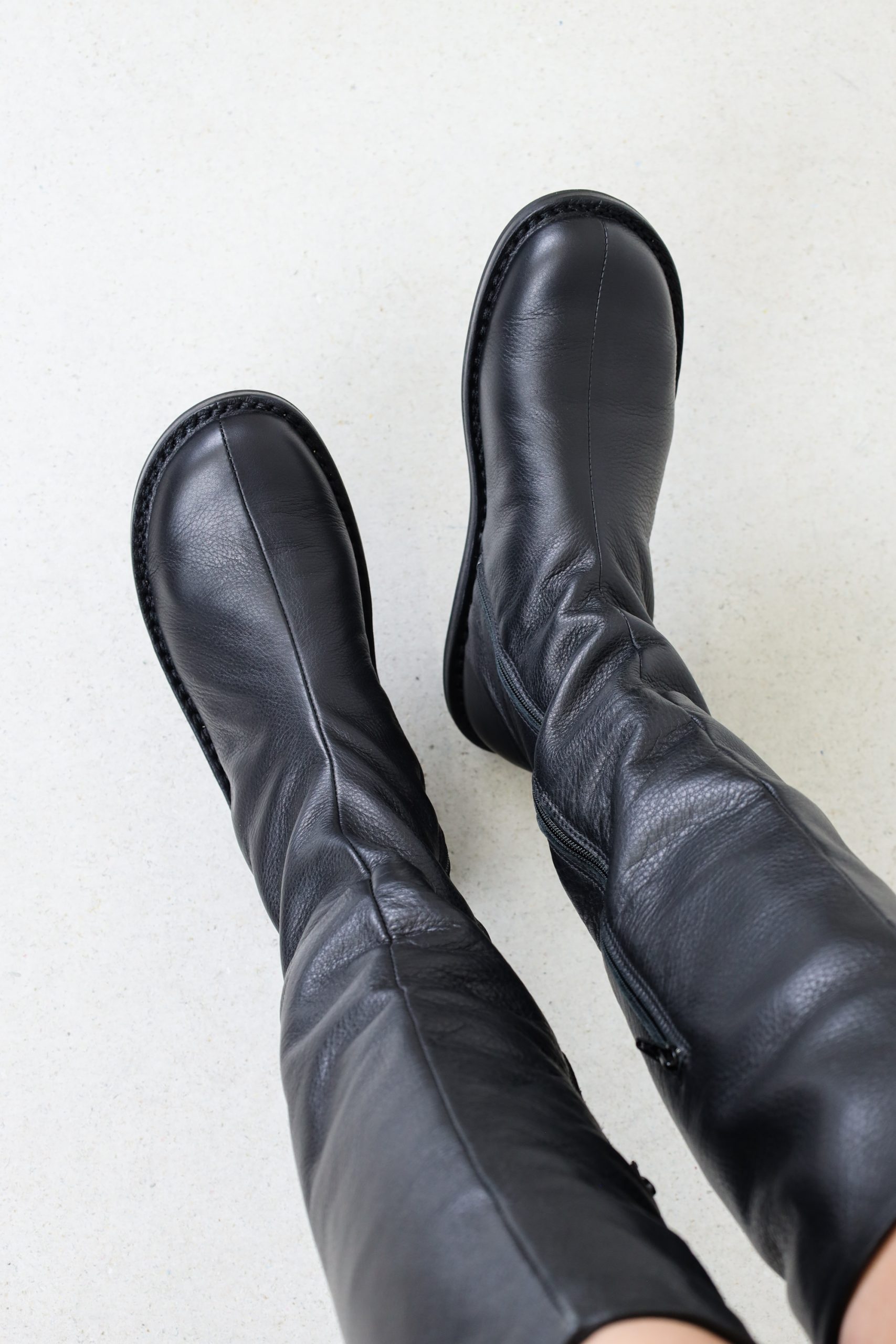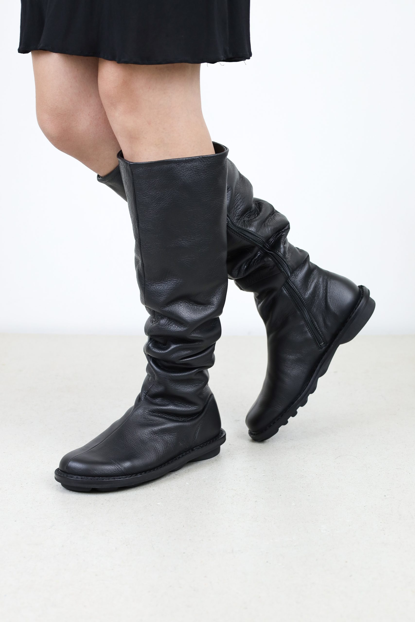 Slender, elegant boot with inner zip fastener made from soft leather, where the bootleg can also be turned or squashed. The picture shows the style with »Pamir« sole.