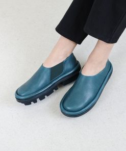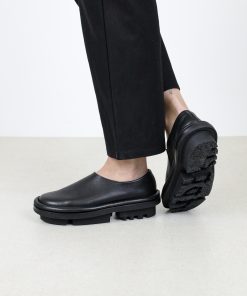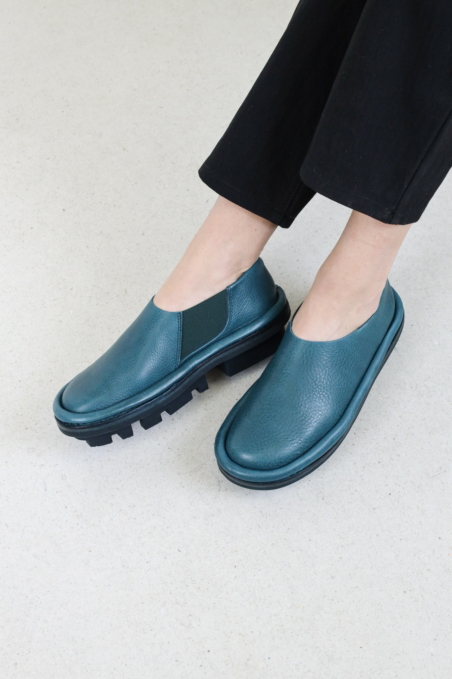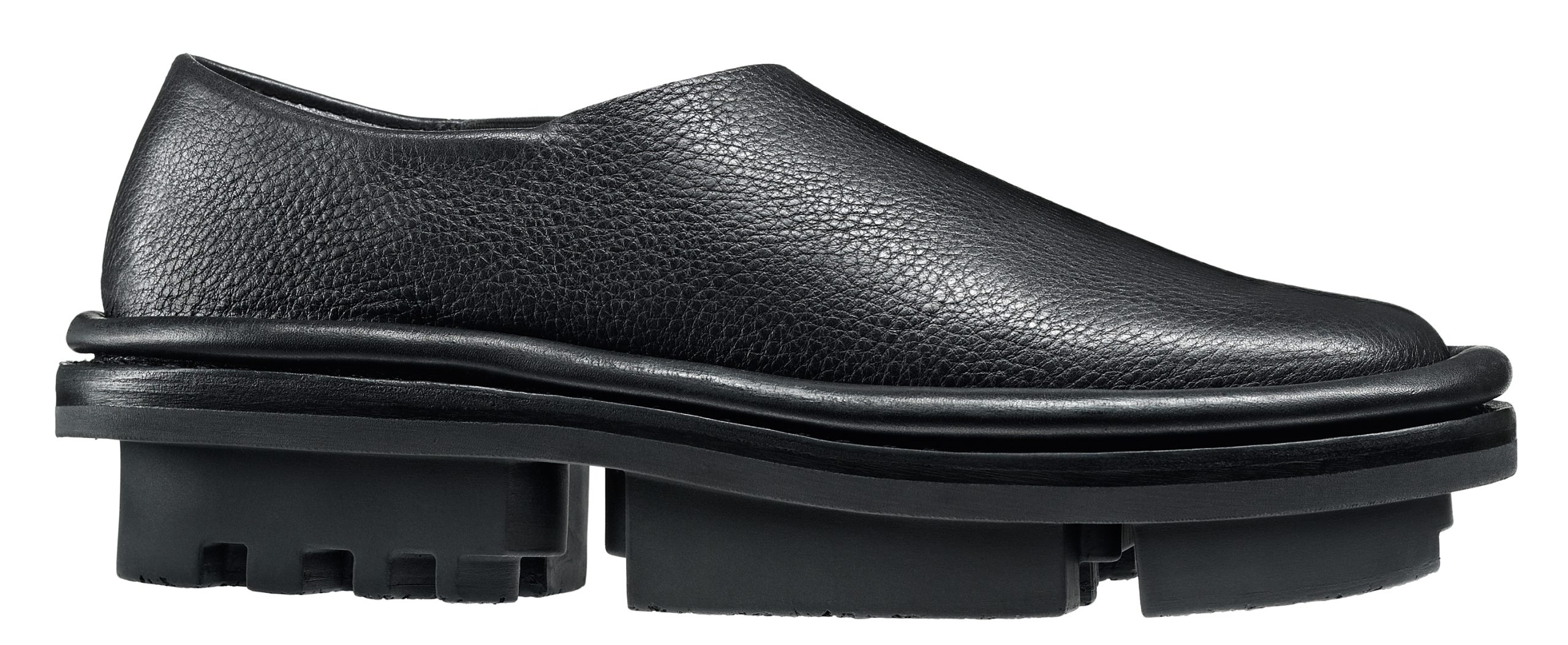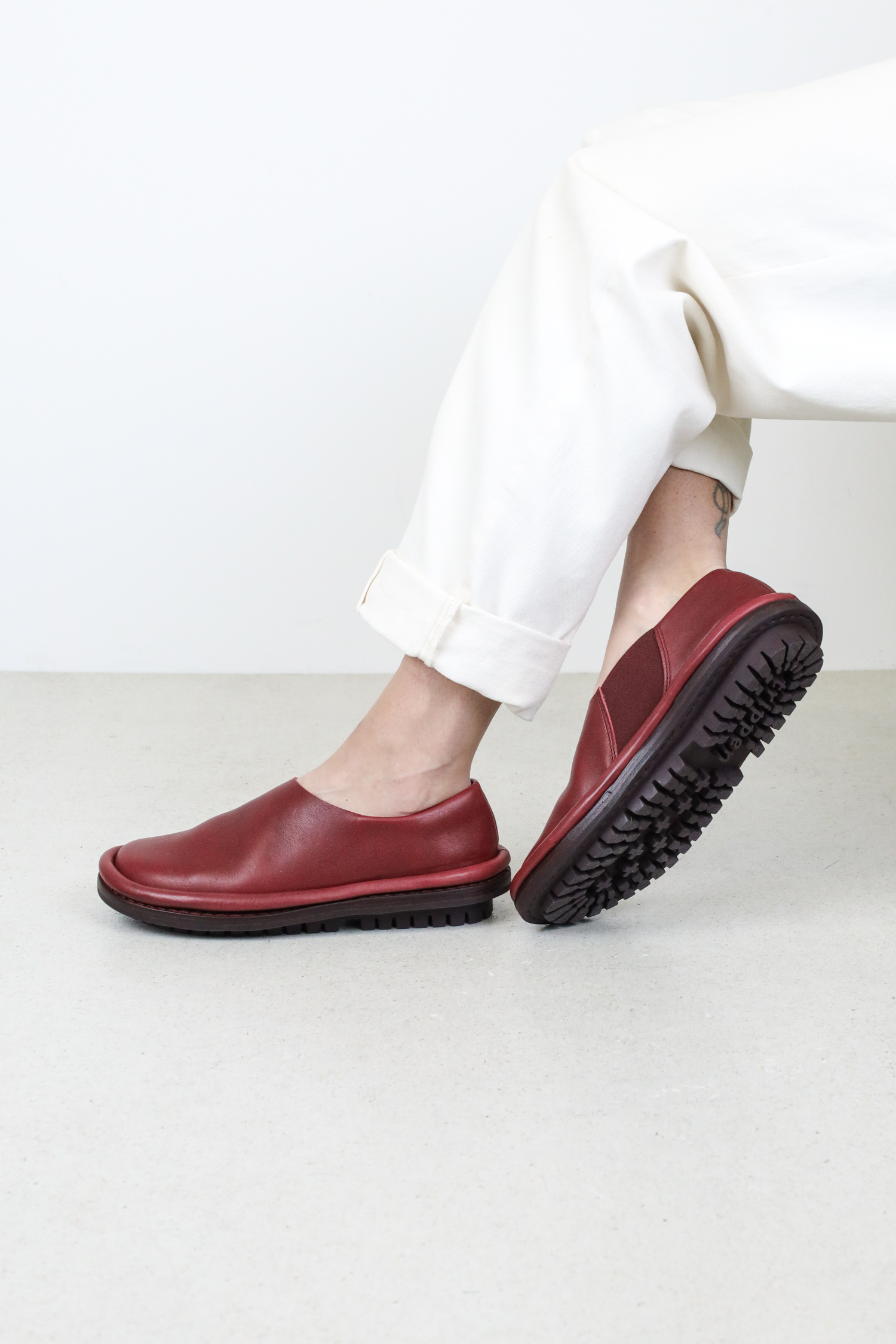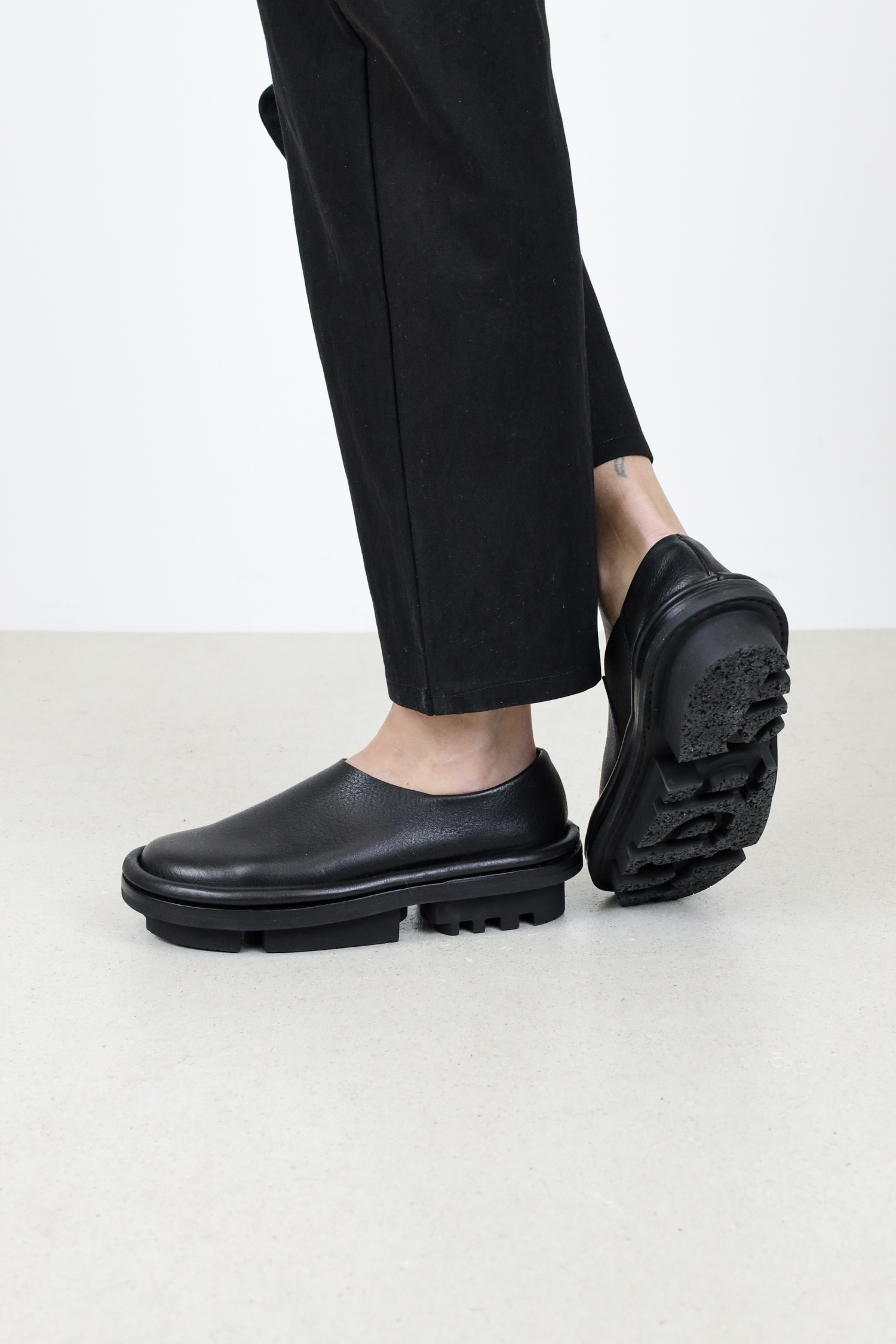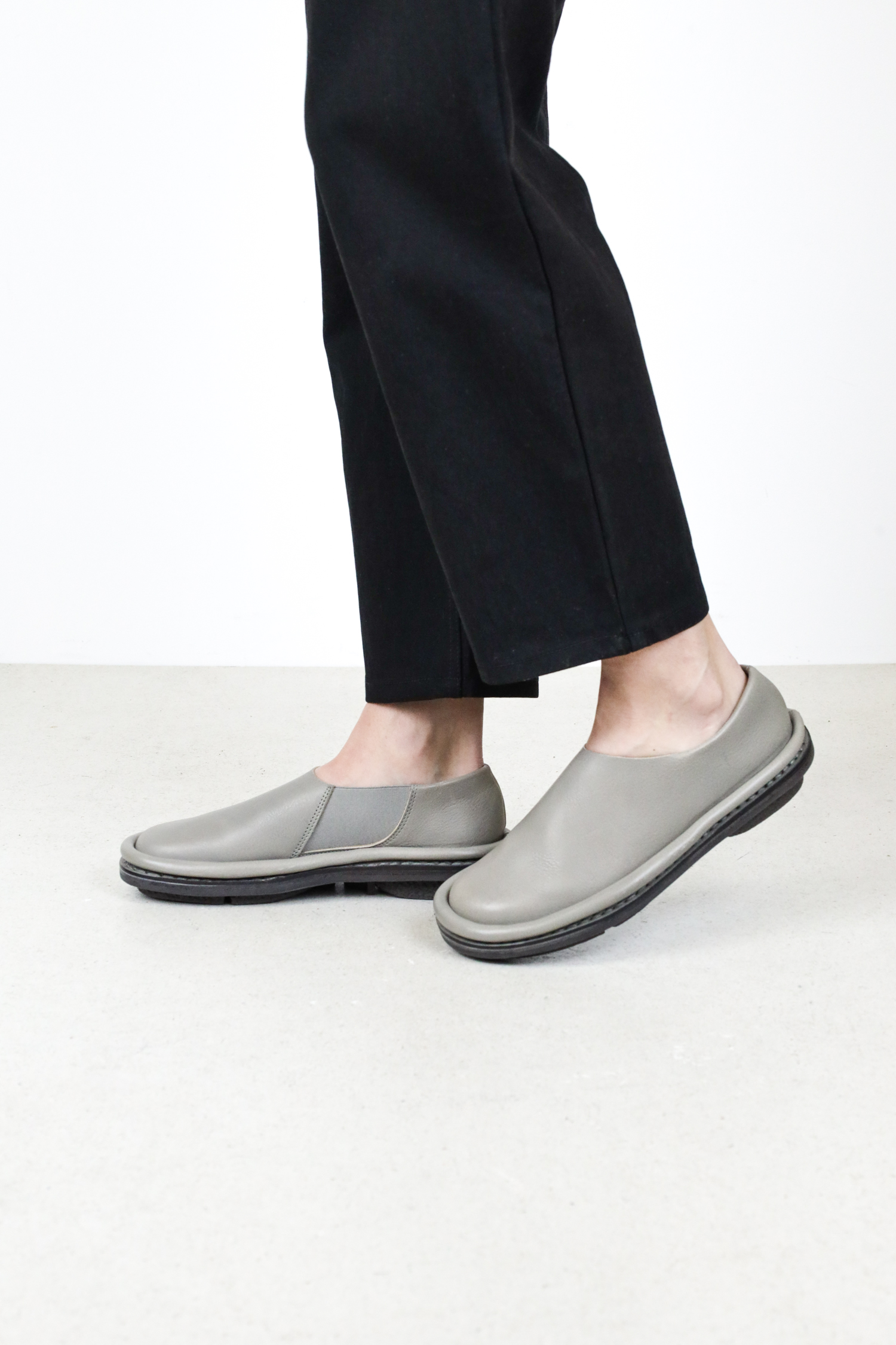 The classic trippen slip-on Yen style receives a makeover with the wide leather tube around the edge.