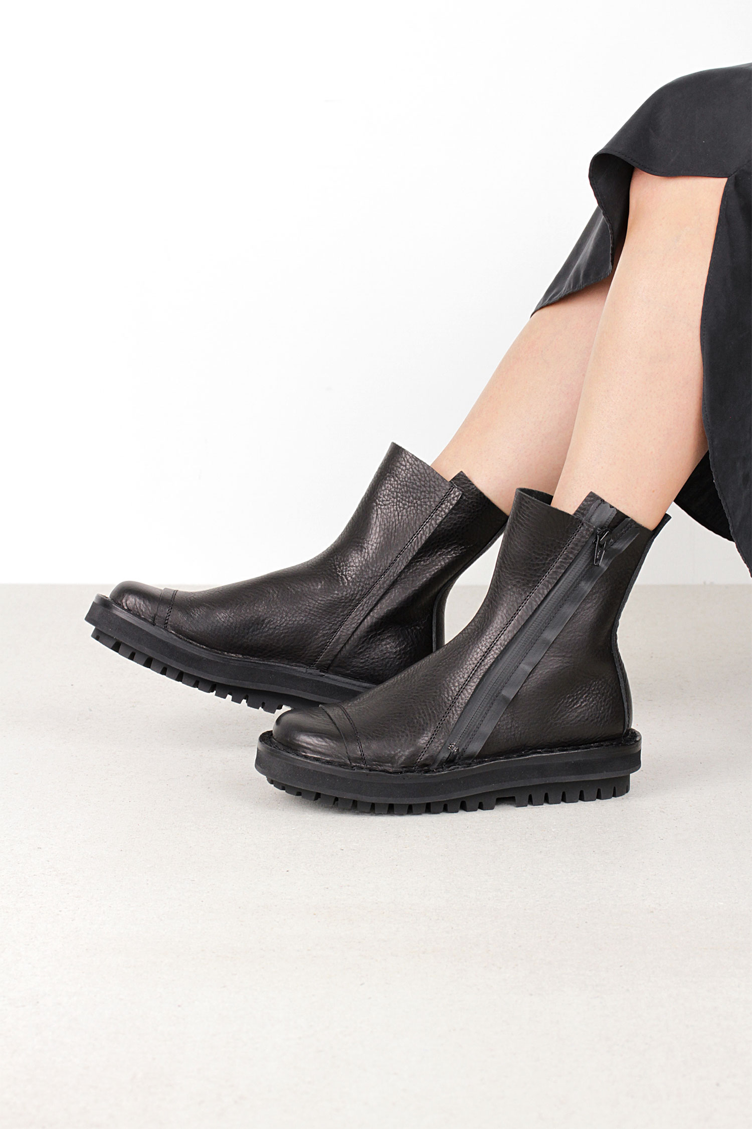 We are complementing our original Trippen silhouette with a fashionable platform sole, available in two versions, Process and Tarone.