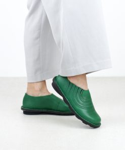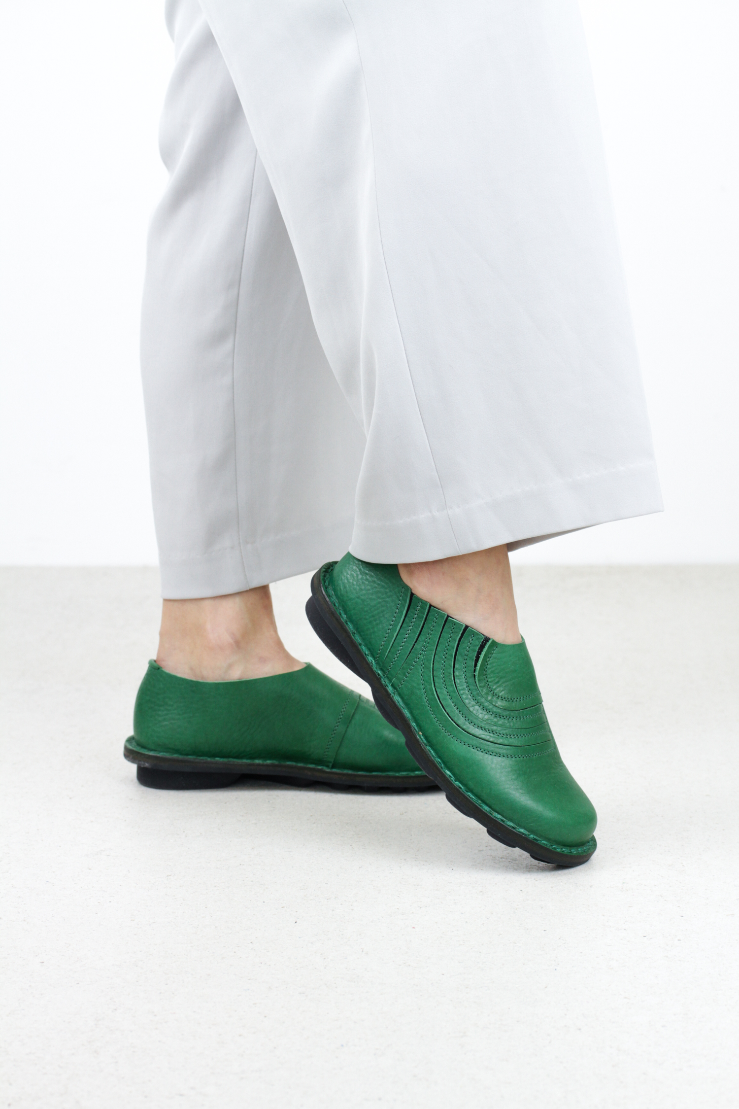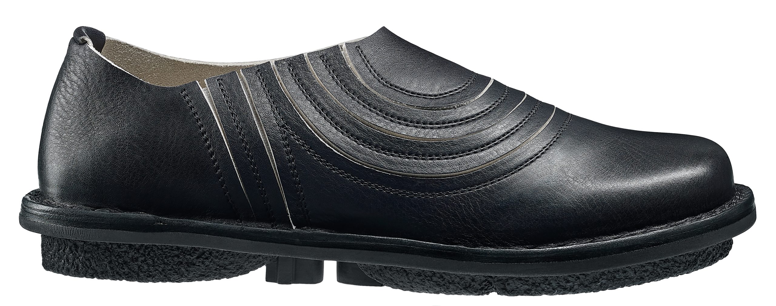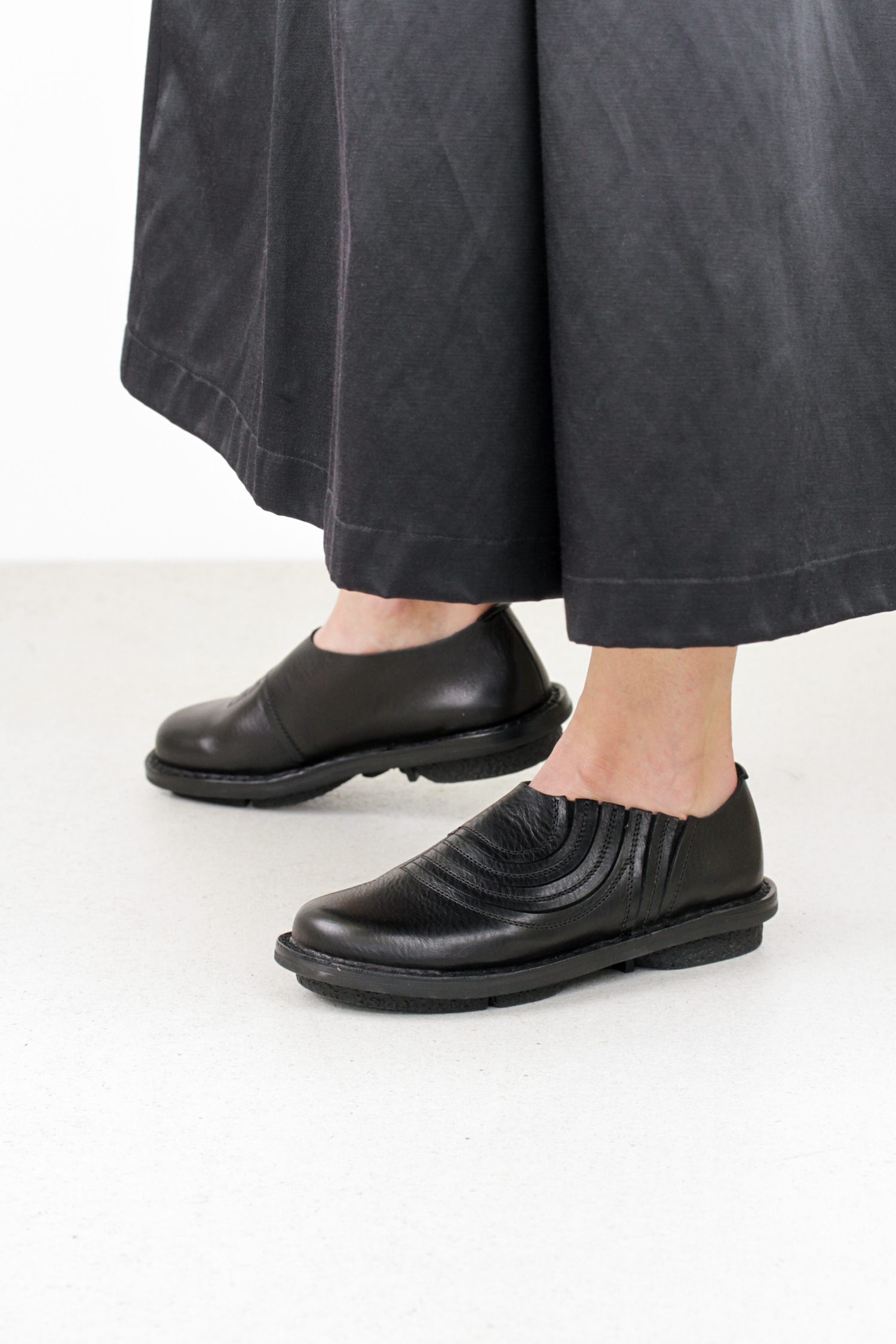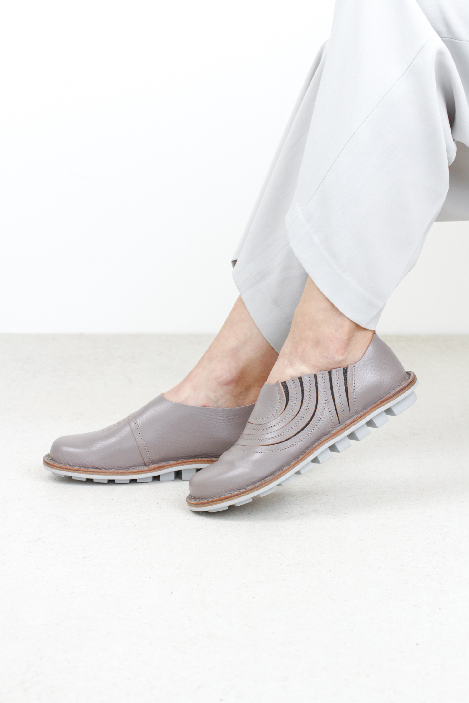 Minimal unisex slip-in everyday shoe, with rainbow-shaped lines that expand over a hidden elastic.
