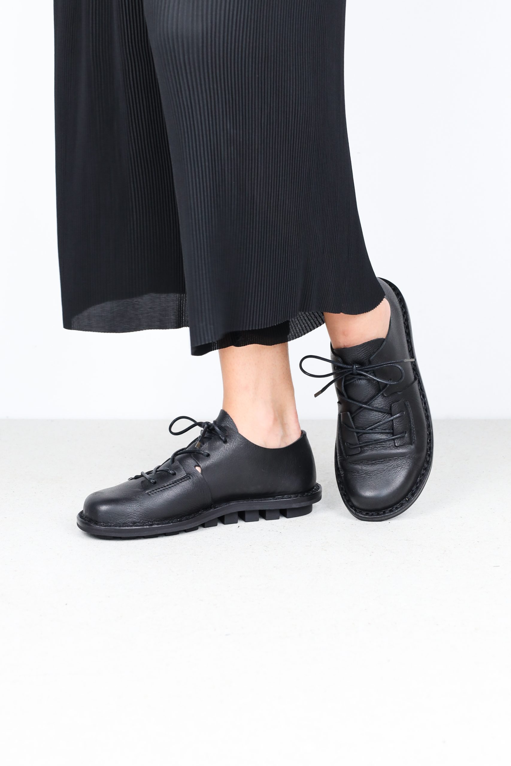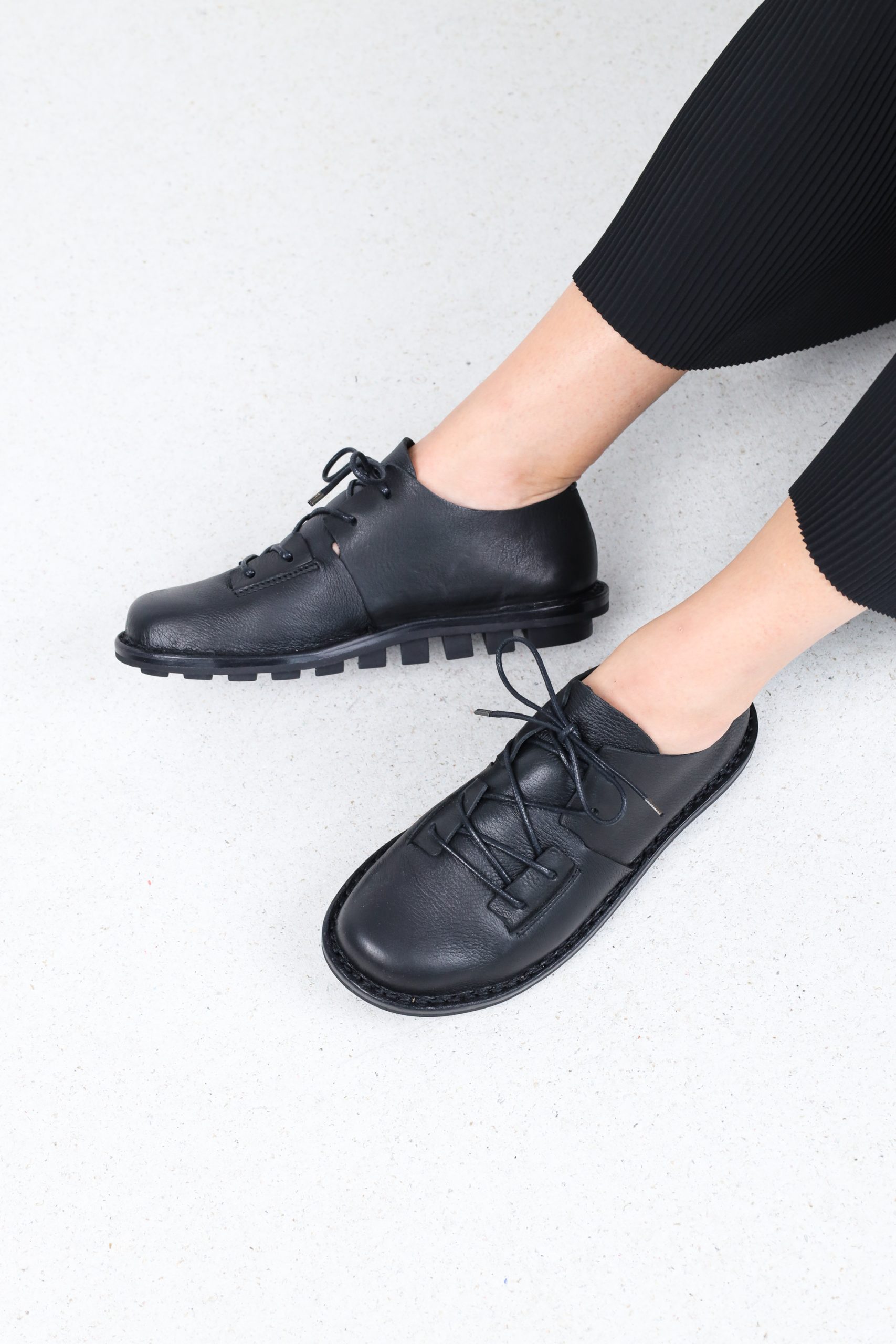 Almost without stitching, the soft vamp and the firm lace and heel element are lace and heel element are joined together.