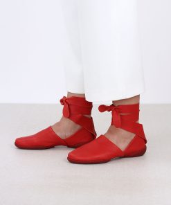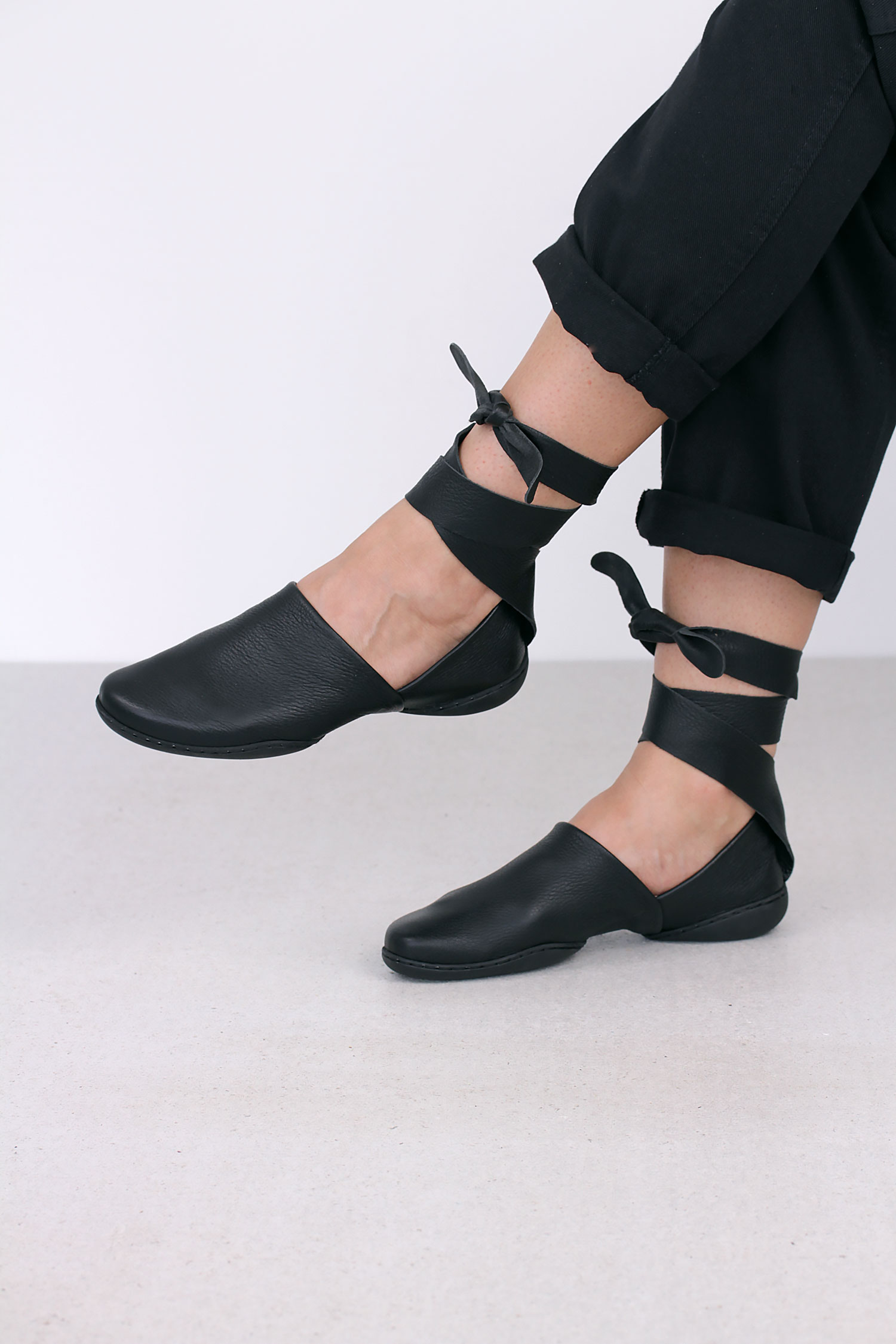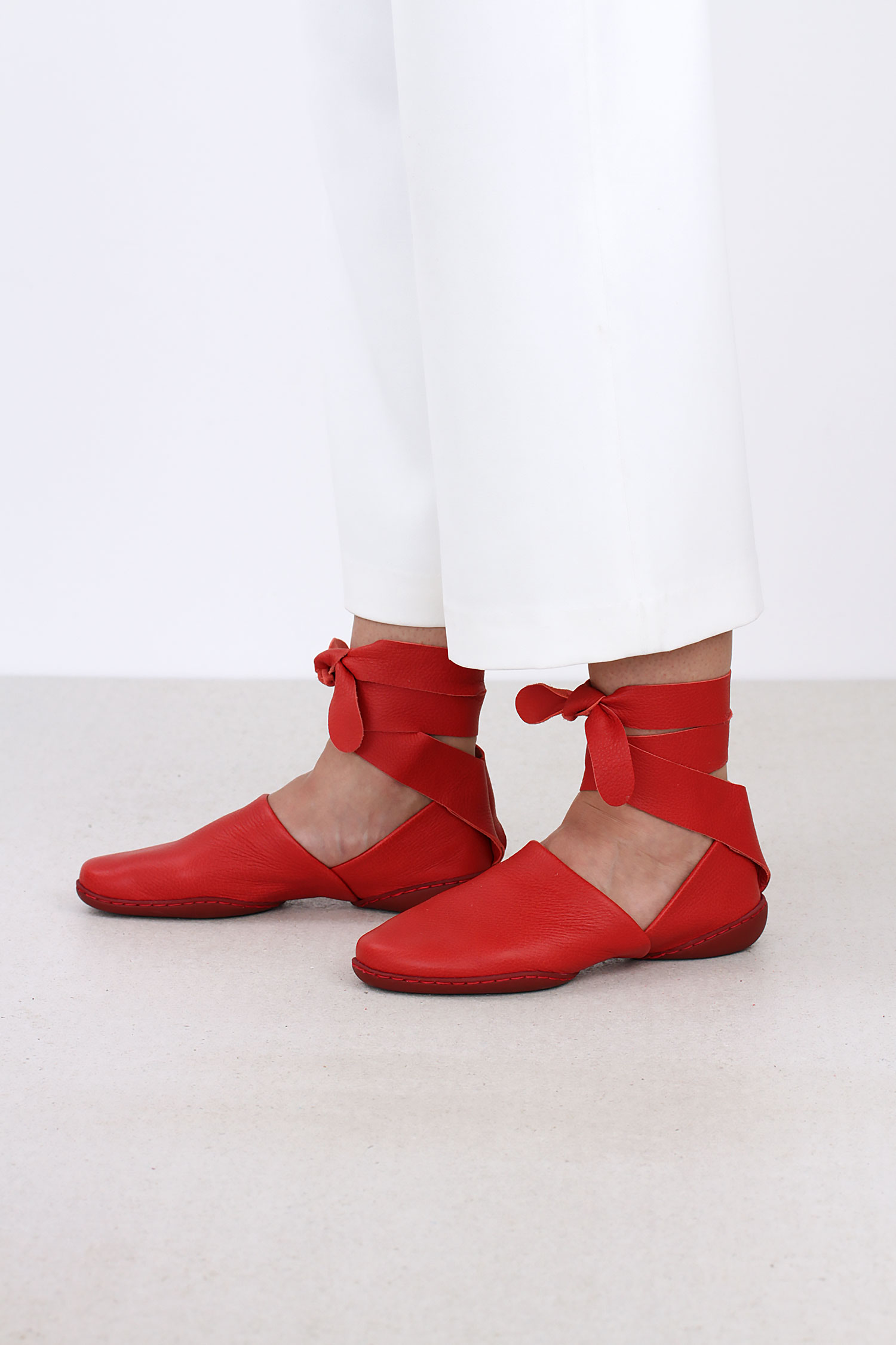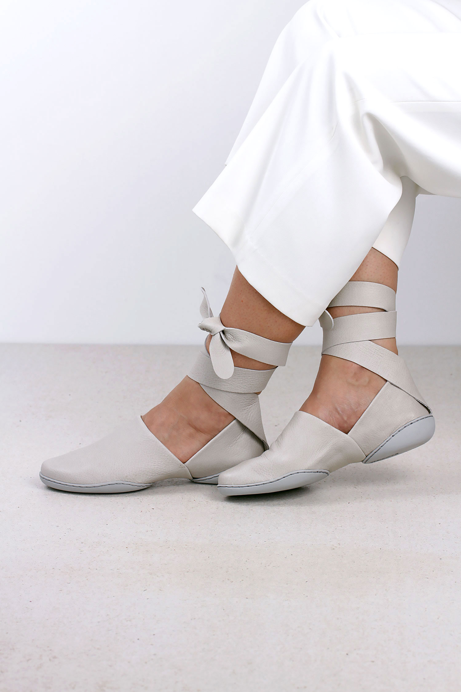 Wonderfully soft ballerina with long leather straps which are knotted around the ankle.