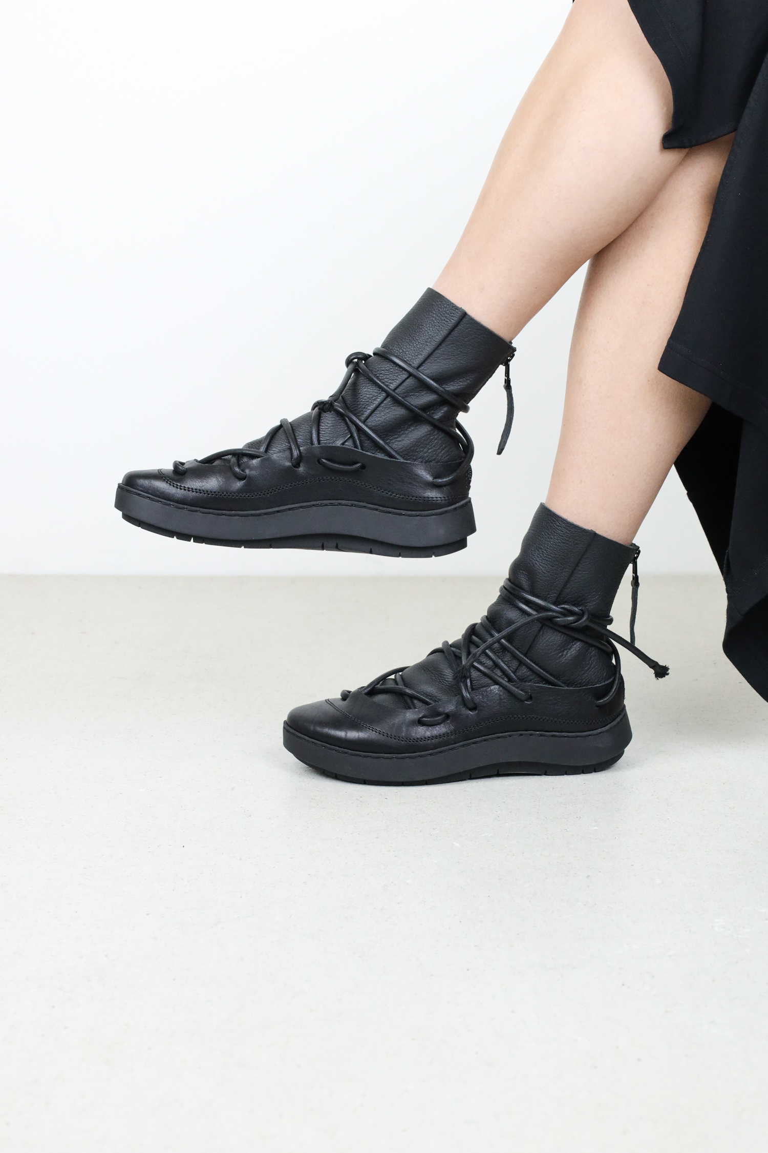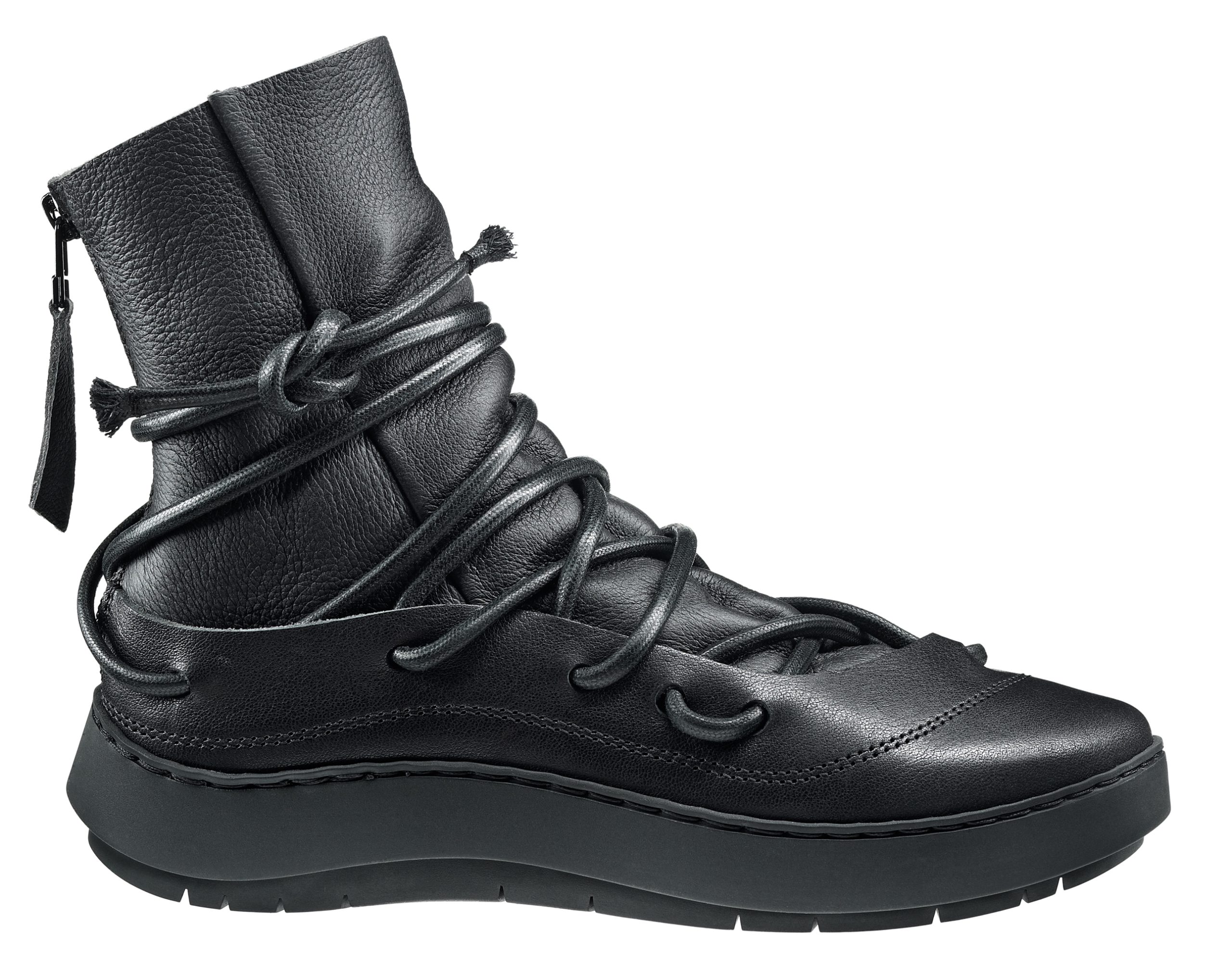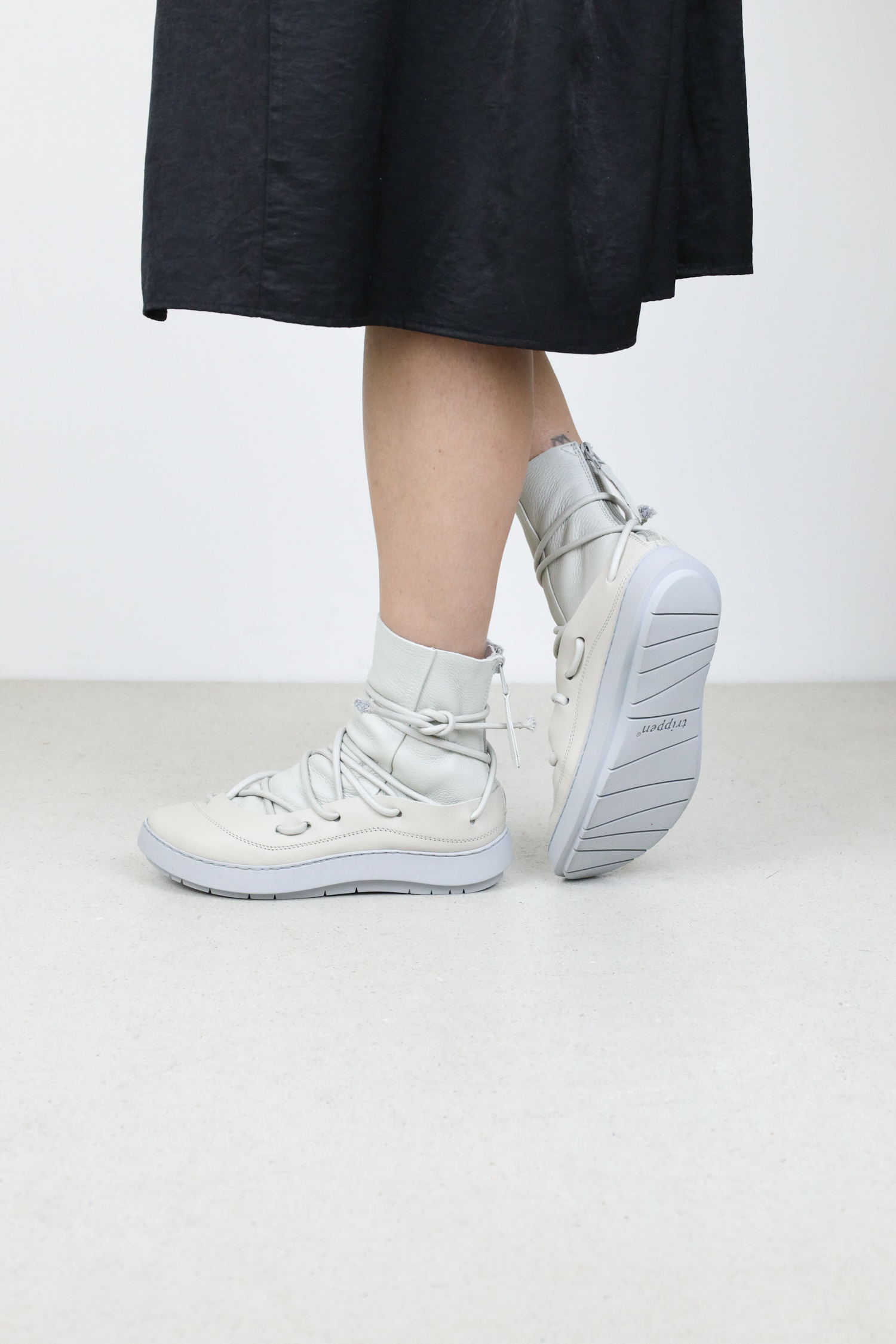 Continuing the characteristic sweep of the Swan sole, the outer upper holds the soft inner upper snugly to the foot with a chaotic lacing system featuring durable laces. The zip at the heel guarantees easy access.