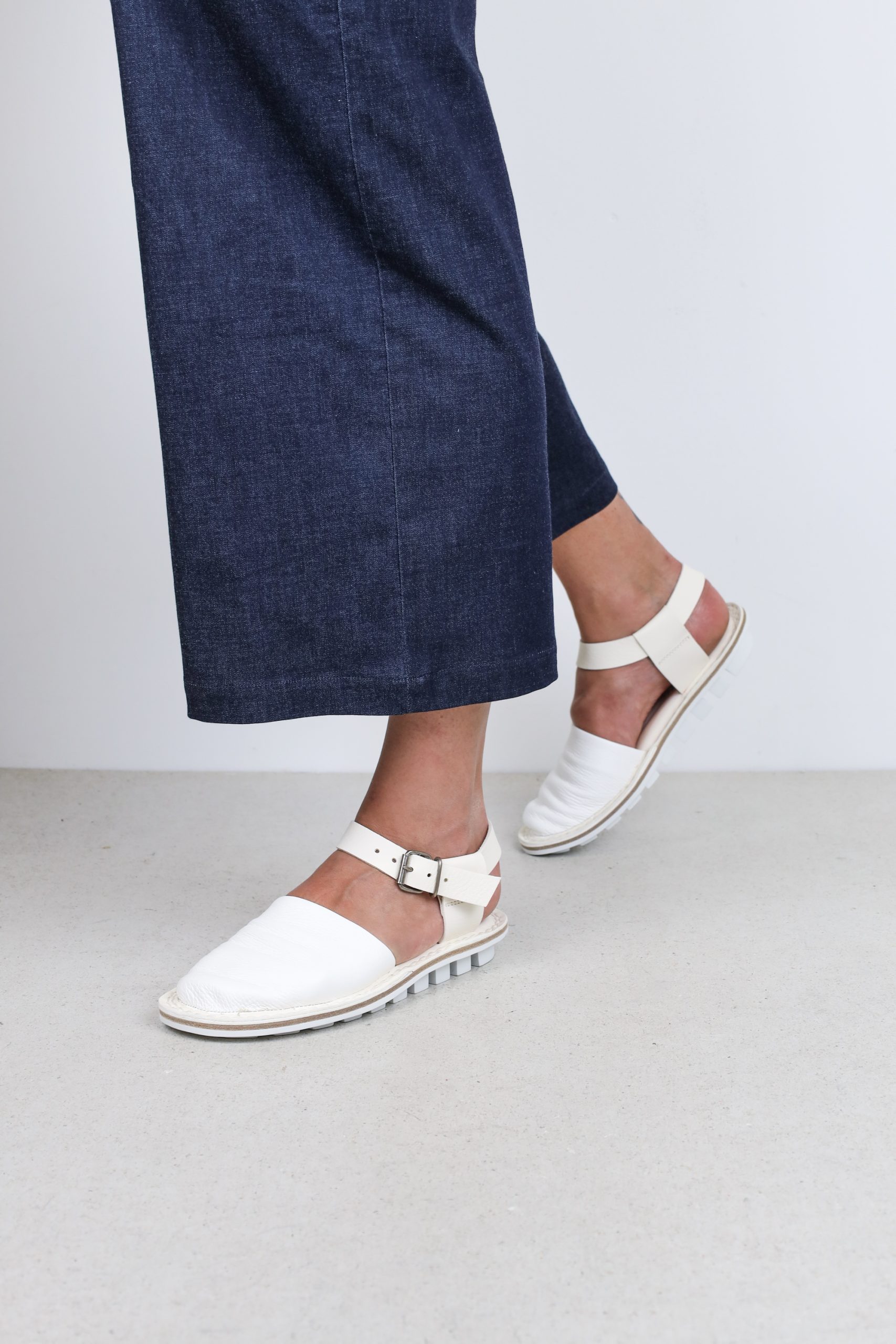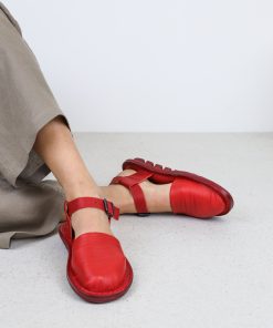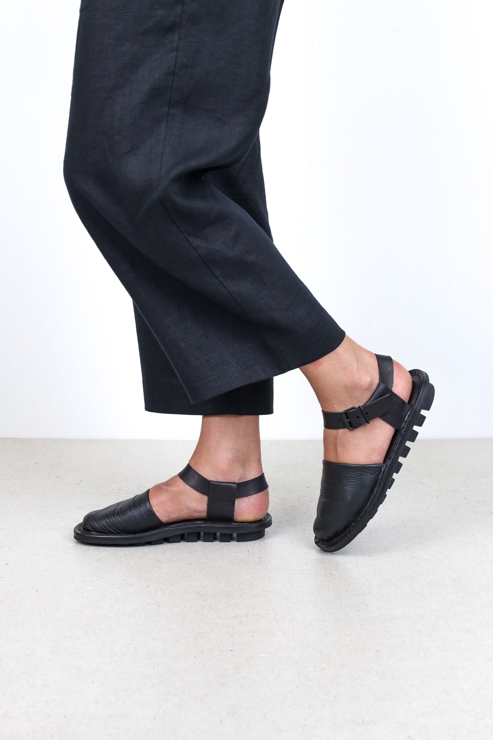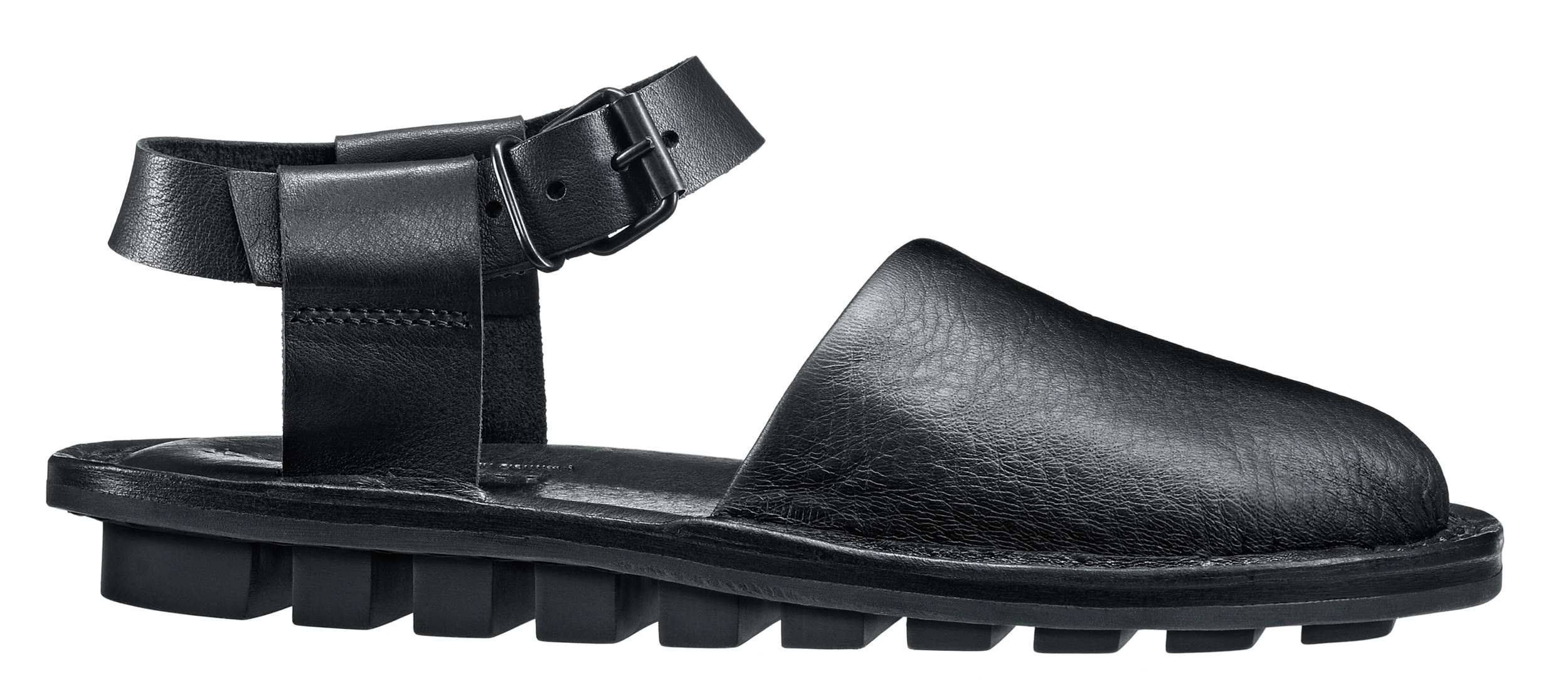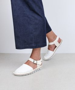 This simple unisex sandal features an extra soft leather upper covering the toes and leather loops that secure the adjustable strap around the ankle.
