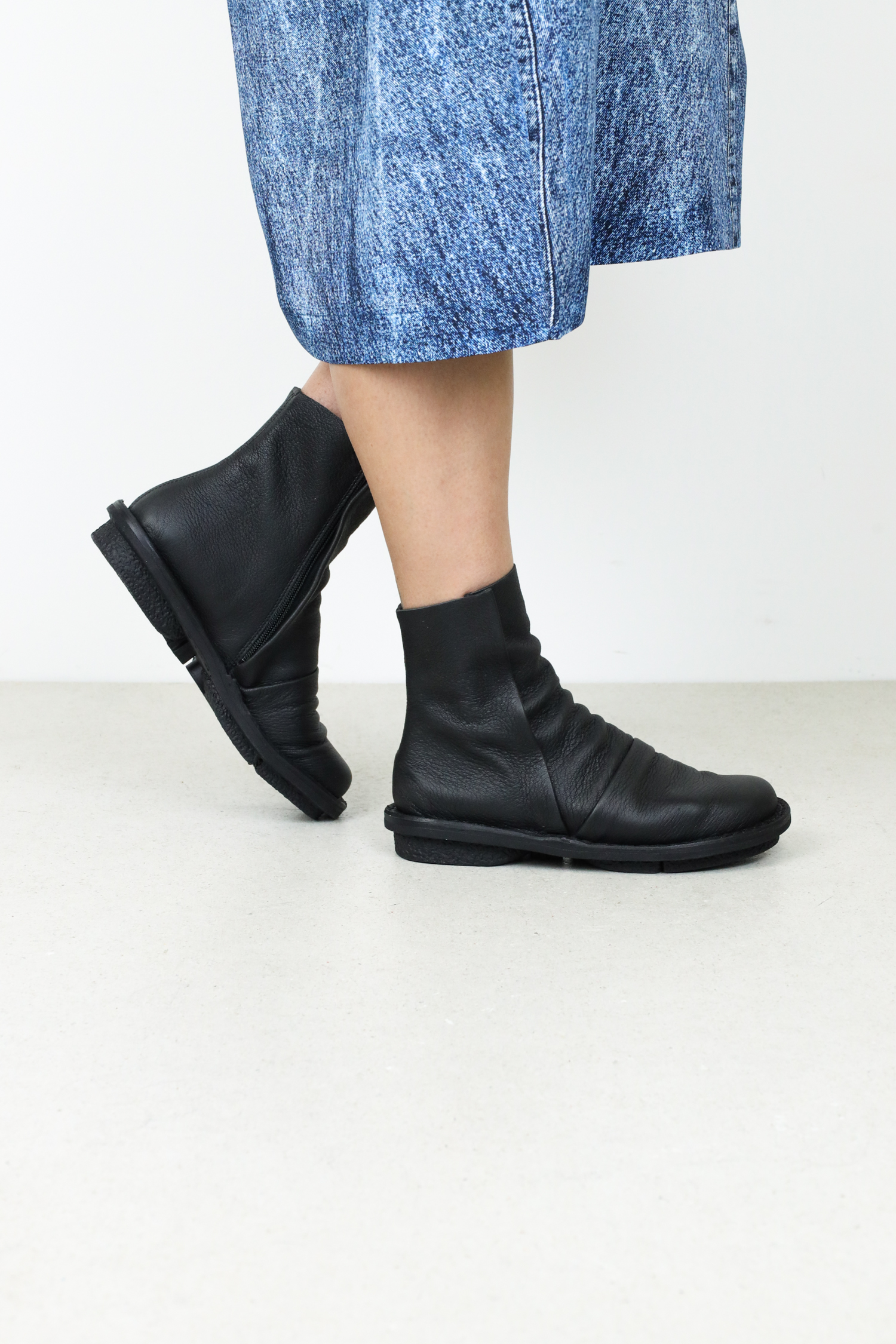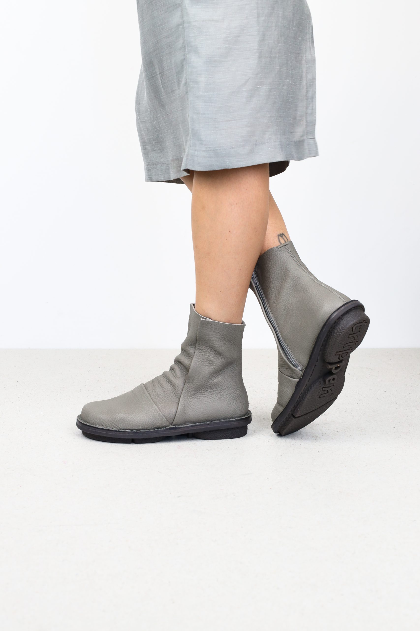 Clearly arranged folds structure this soft ankle boot, also cleverly concealing the zip.